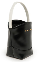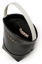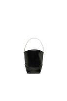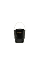 フロントにロゴがあしらわれた構造的なデザインのフラワーバスケット ハンドバッグ。
