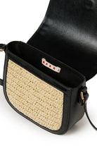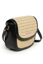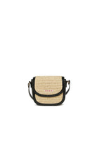 ラフィア加工とロゴ入りバッグ。このアクセサリーはスタイルと実用性を兼ね備えています。