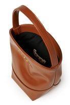 フロントにロゴがあしらわれた構造的なデザインのフラワーバスケット ハンドバッグ。