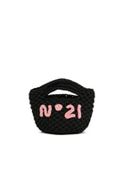 編み込み加工で仕上げた立体的なロゴ入りバッグ、個性的なスタイルに。