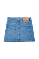 5ポケット付きデニムミニスカート、バックにパッチ付き。