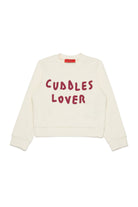 前面にCuddles Loverロゴがあしらわれたクルーネックスウェット。襟、袖口、裾にリブディテールを施したデザインです。