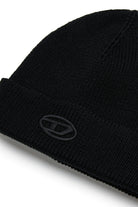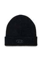 暖かいウール混ニットのビーニーは寒い日に最適。オーバルDの刺繍がこのアクセサリーのシンプルさをエレガントに引き立てている。