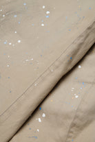 ロゴプリント入りトレンチコート、膝丈、ペイントスプラッター効果のプリント。背面のアイコニックなステッチが、このアイテムの特徴を際立たせます。