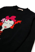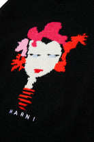 クルーネックの長袖ウール混ニット・プルオーバー。インレイで作られたMarni FlowerーのグラフィックとMarniのロゴがあしらわれています。暖かく快適な一着で、スタイリッシュに目立つのに最適です。
