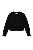 ウール混紡のリブニットを使用したクロップド丈のクルーネック長袖プルオーバー。ネック、袖、裾に施された局所的な切れ目が、着古したようなオーセンティックな効果を与えている。特別な日にも、どんなルックにも個性を加えるのに最適。