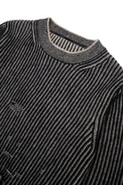 ソフトで暖かな2色リブのウールプルオーバー。繕い破りが本物の生活感を演出し、個性的で洗練されたルックスに。