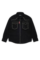 スタッズ付きブラックデニムシャツ