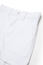 背面にロゴがあしらわれたデニムショートパンツ。トーンオントーンのステッチとジッパー付きボタン留めの、ファイブポケットデザイン。