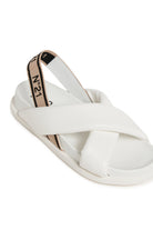 バックにN°21のロゴ入りゴムがあしらわれたサンダルです。アッパーは膨らみ効果のあるクロスデザイン。熱可塑性ラバーソール。イタリア製。