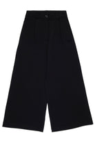 ロゴ刺繍入りのワイドレッグフォーマルパンツ。フロントのプリーツがシルエットにボリュームを与えています。