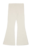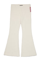 リブ編みベルベットのフレアパンツ。ウエストはフィットさせ、太ももから足首にかけては裾幅を広めにしたモダンなカッティングで、ヒップにあしらったディースクエアード2のマキシフラッグのアップリケロゴがアクセントになっています。