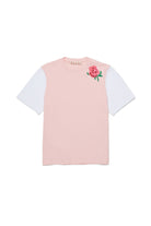 胸元にバラの刺繍とロゴが入った、100%コットンのTシャツです。