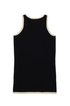 ロゴと裾にフローラル柄があしらわれたショートドレス。シンプルなデザインのノースリーブモデルで、素材はすべてコットン100%。