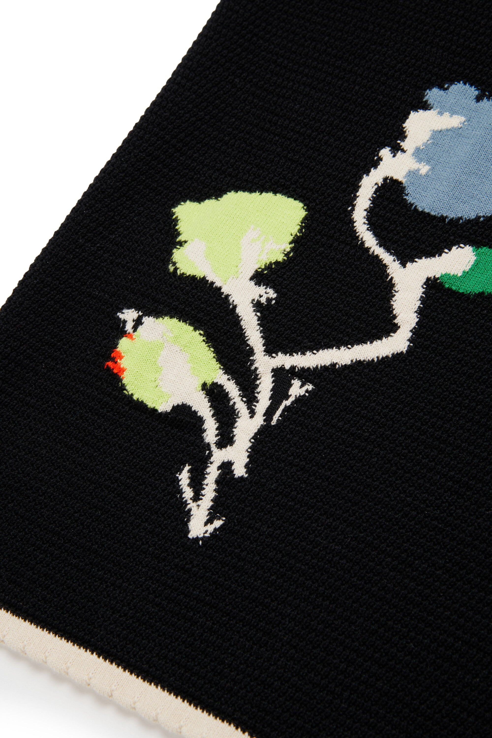 - 裾に施されたフローラル柄と胸元のロゴ