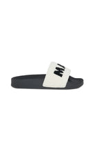 モダンなデザインのスリッパです。テリー織りのアッパーにコントラストカラーでMARNI!ロゴが刺繍されています。ポリウレタンソール。イタリア製。