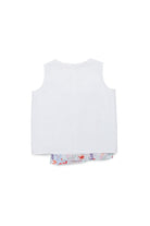 ポプリン製のノースリーブクルーネックTシャツです。フロントにオールオーバープリントのHolidayプリーツ入り。バックジップクロージャー。コットン100%製。 撮影された商品とお手元に届く商品の違いは、商品の仕上がり、品質、独自性の象徴です。