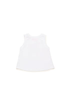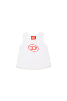 ジャージー素材のノースリーブクルーネックTシャツ。フロントにアイコン的オーバルDのロゴ入り。コットン100%製。