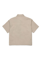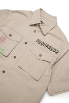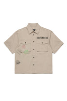 ストレッチコットンギャバジン生地の半袖シャツ。フロントにPassportートグラフィックのDsquared2ロゴ。胸ポケット。フロントクロージャー。