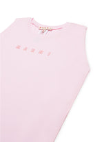 ジャージー素材のクルーネックノースリーブカバーアップドレスです。前身頃にコントラストカラーのMarni Outlineロゴがあしらわれています。コットン100%製。