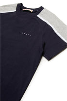 カラーブロックのディテールとコントラストカラーのパイピングが施されたジャージー素材の半袖クルーネックTシャツです。フロントのハートサイドにインスティテューショナルロゴ入り。コットン100%製。様々なシーンで着用できるスポーツテイストのウェア。