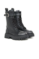 つま先にスタッズのついたコンバット・ブーツ