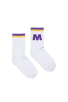 コットンブレンドのテリー織ソックス。ツートーンのストライプとコントラストカラーのロゴが特徴です。イタリア製。サイズ I: 26-29 サイズII:30-34 サイズ III: 35-38 サイズIV:39-41