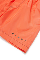 ロゴ入り裾ショートボクサー水着。ミニマルなラインとテクニカルなディテールが特徴のビーチウェアモデル。
