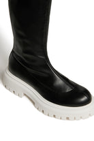 モダンなデザインのロングブーツ。サイドにコントラストの効いたオフィシャルロゴをあしらっています。トップにはオーバーロックステッチを施し、アッパーには**コーティング生地**を使用。ライニングにはレザー混素材を採用。コントラストのある熱可塑性トラックソールが特徴です。洗練されたデザインで、カジュアルな場面にも適した一足です。イタリア製。