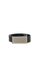 数字のロゴが入った金属製のバックルが特徴なレザーベルト。様々なシーンに合わせやすいアクセサリーです。牛革100%。