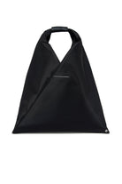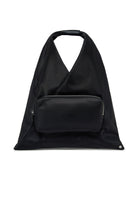 ポケット付きジャパニーズバッグ。三角形のシルエットが特徴。カラートーンの数字ロゴ入りフロントポケット。合成皮革の袖。ボタン留め。背中にアイコニックな縫い目。MM6を象徴するアクセサリーをアダルトコレクションから再解釈。寸法:高さ31.5cm、長さ44cm。袖丈:20cm