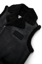 シャーリング加工を施したロングベスト。裏地とテディのディテールが柔らかさと暖かさを演出。フロントの斜めのジッパーが個性的で、ドレスとしても着られるトレンドの一着です。