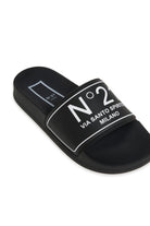 モダンなデザインのスリッパです。コントラストカラーのN°21 Milano Via Santo Spiritoロゴ。アッパーはポリ塩化ビニール。ポリウレタンソール。イタリア製。