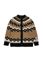 ノルウェー製ウール混紡の長袖オーバーサイズカーディガン。ノルディック・テイストのジャカード編みで、ソフトで暖かい。