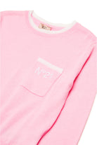 長袖クルーネックプルオーバー。ハート柄刺繍のN°21ロゴ入りサイドポケット。コントラストカラーのパイピング。クルーネック、袖口と裾にリブ編み。コットン100%製。