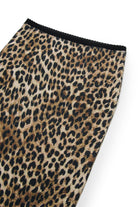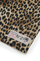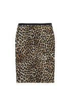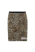 ロゴとアニマルプリントが施されたミディスカート。はっきりとしたデザインが特徴の一着で、裾に付けられたラベルがアクセントになっています。