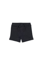 背面にロゴとカエデの葉があしらわれた、無地のコットンショーツ。