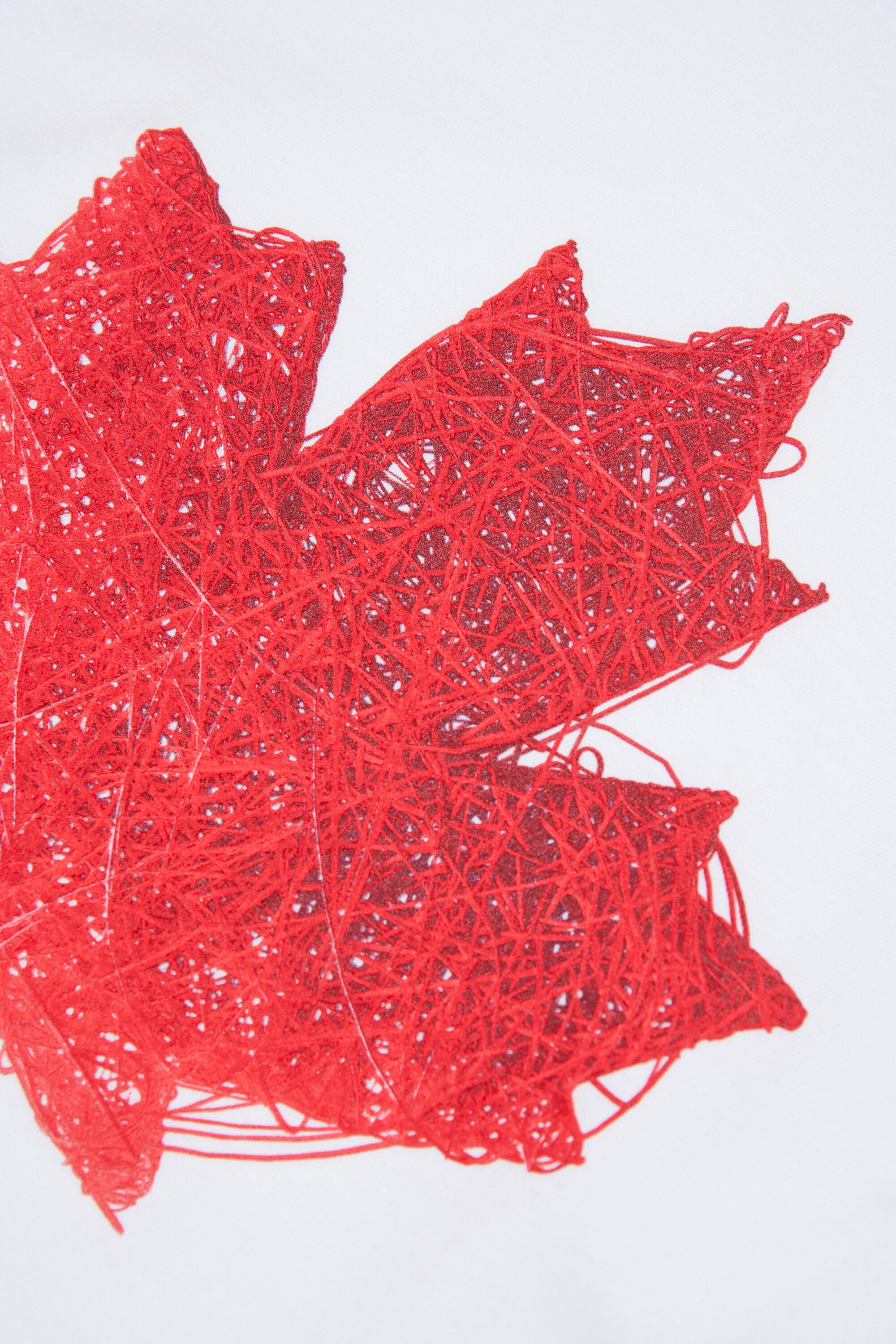 フロントに立体的なロゴと大きなカエデの葉をあしらった、100%コットンのTシャツ。コーディネートに個性をプラスするのに最適な一枚です。