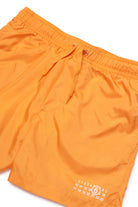 ナイロン製ボクサーコスチューム。ショート丈。ドローストリングウエスト。フロントとバックにコントラストカラーの数字ロゴ。メッシュインナーブリーフ。フロントウェルトポケット。バックポケット。背中にアイコニックな縫い目。