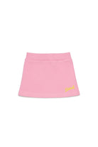 ロゴ入りでテクスチャード加工が施されたミニスカート。背面にはコントラストカラーのパッチポケット付き。