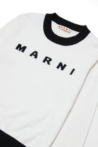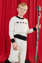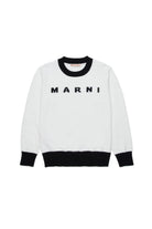 100%コットンのクルーネックプルオーバー、コントラストロゴ付き。