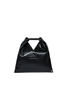 コーティング生地の日本のミニバッグ。三角形のシルエットと、バッグをさまざまな方法で折りたたむことで形を変えることができる端のボタンの存在が特徴で、フランスのメゾンの美的コードを明確に参照しています。持ち手には数字ロゴのレザー部分が入っています。これは、大人のコレクションから取られたMM6の最も象徴的なアクセサリーです。