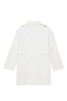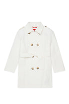 長袖のオットマン製のミロダブルブレストトレンチコート。フロントにロゴ入りボタンとウエストベルト。MAX&Co.のアイコンで、カローラスカートと合わせて、セレモニーや特別な行事にぴったりのルックに。