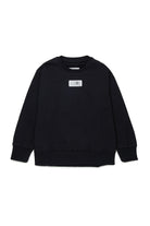 胸元にロゴ、背面にアイコニックなステッチが施されたクルーネックスウェット