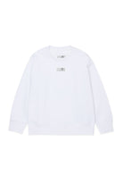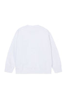 胸元にロゴ、背面にアイコニックなステッチが施されたクルーネックスウェット