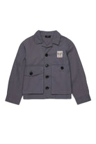 ロゴプリント入りワークウェアジャケット。デザインは、フロントに大きなパッチポケットと際立つステッチが特徴です。
