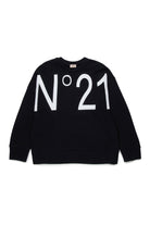 フロントにオーバーサイズのロゴが入ったクルーネックスウェット。100%コットン素材で、コントラストの効いたマキシグラフィックプリントが特徴です。