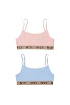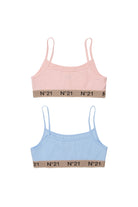 ロゴ入りスポーツブラセット。柔らかなコットン素材と目立つゴムバンドで仕上げています。