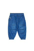 フロントにパッチポケットとステッチ入りディテールが施されたリラックスジーンズ。