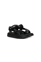 モダンなデザインのプラットフォームサンダルです。ベルトにはコントラストカラーでインスティテューショナルロゴがプリントされています。ソールは熱可塑性ラバー製。イタリア製。